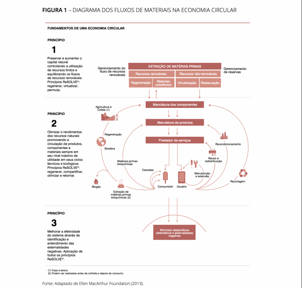 A adoção da Economia Circular é um dos um dos caminhos para o enfrentamento desse problema, pois “associa o crescimento econômico a um ciclo de desenvolvimento positivo contínuo, que preserva e aprimora o capital natural, otimiza a produção de recursos e minimiza riscos sistêmicos, com a administração de estoques finitos e fluxos renováveis”.