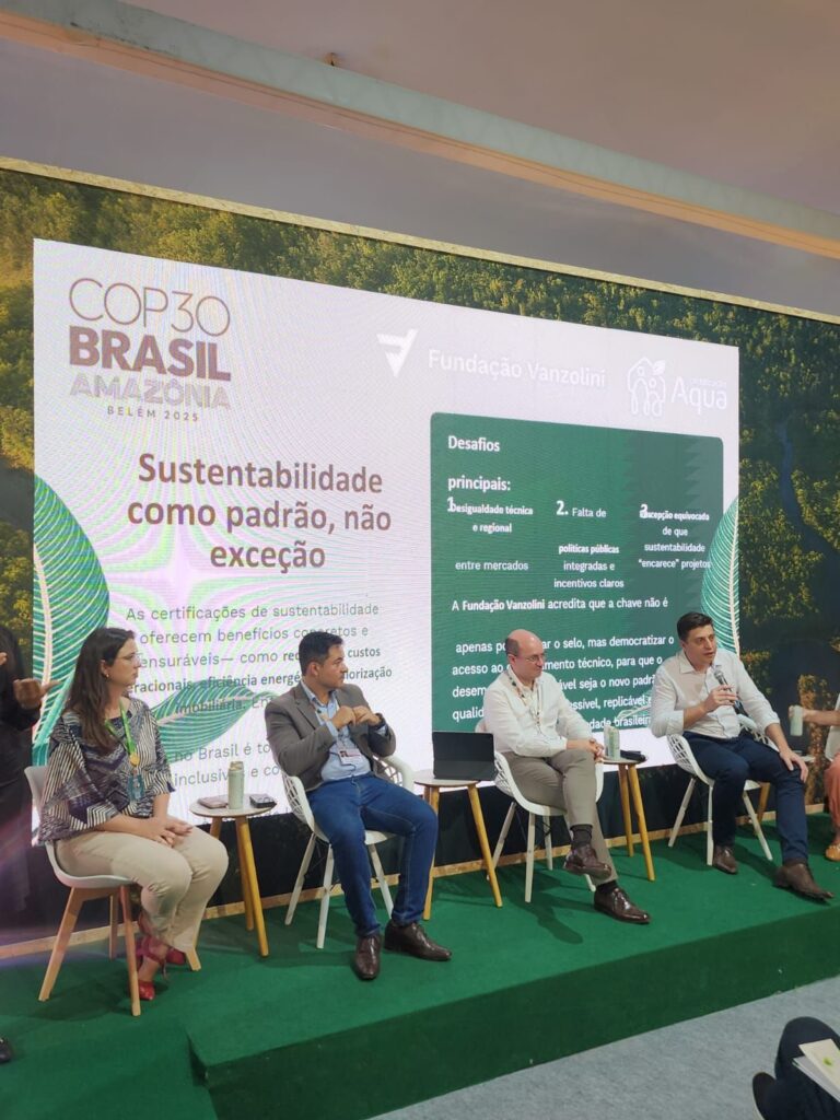 Com mais de 15 anos dedicados à certificação AQUA-HQE™ e à difusão de conhecimento técnico na construção sustentável, a Fundação Vanzolini destacou na COP30 a importância de tornar a sustentabilidade mais acessível e incorporada ao desenvolvimento urbano brasileiro.